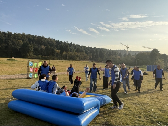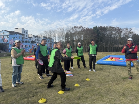 红色教育的洗礼过后,团队拓展环节在仙海户外场地拉开帷幕。“口令与动作”、“飞盘飞靶”、“飞盘投篮”、“团队拼图”等项目轮番进行。拓展活动现场,队员们奋力拼搏、互相鼓劲;赛场下,啦啦队呐喊助威、掌声不断,整个活动现场充满了激情与活力,不仅锤炼了大家的协作精神,更让彼此加深了情谊。