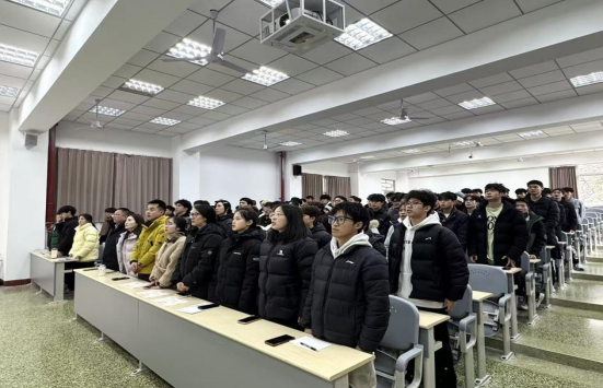 大会在全体齐唱团歌中开始。随后,学院党委副书记董海弟讲话。他肯定了团学成员在过去一学年中的工作付出与取得的成绩,并对大家的责任意识与奉献精神表示认可。针对接下来的工作,董海弟提出三点要求:一是保持工作热情,持续发力,精益求精;二是发挥先锋模范作用,以身作则,服务学院建设;三是平衡工作与学习,临近期末,要集中精力复习备考,确保学业成绩。