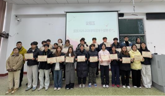 会议举行了聘书颁发仪式。董海弟依次为2025级助理班主任、学生分会主席、分团委学生副书记及全体团学干部颁发聘书,肯定了大家的工作表现,并明确了新阶段的工作责任。
